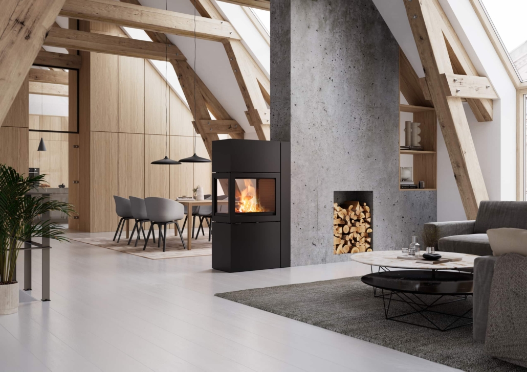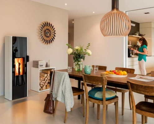 Dänisches Design trifft auf intelligente Technik. HWAM-Kaminöfen regulieren die Verbrennung automatisch und sorgen so für einen sauberen, effizienten Betrieb bei maximalem Bedienkomfort.